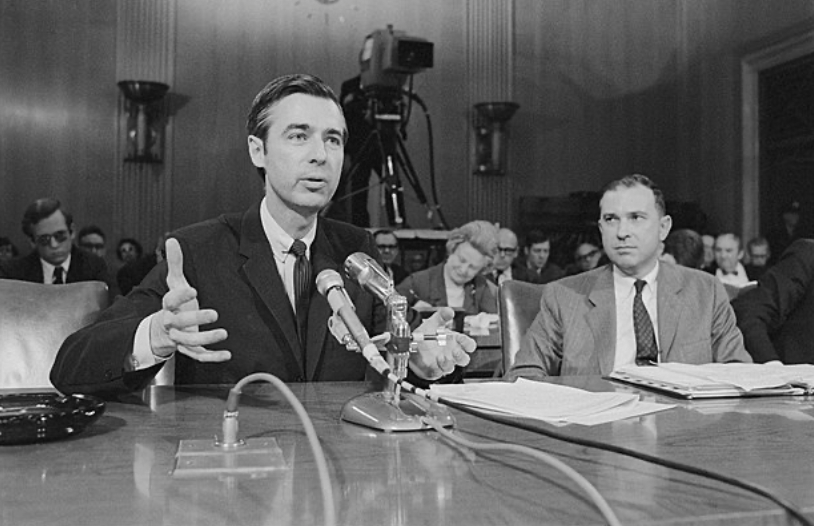 Fred Rogers defends public broadcasting before the U.S. Senate, May 1, 1969. In his quiet voice, he made the case for nurturing children’s emotional well-being through television: “I give an expression of care each day to each child, to help him realize that he is unique.” [Photo: Library of Congress]