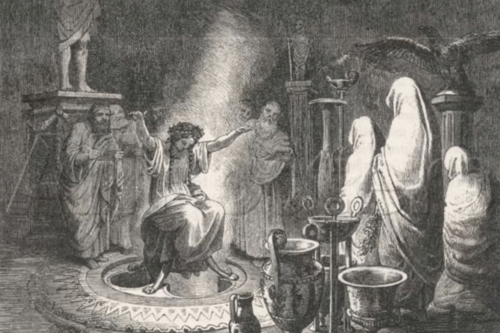 She would have to be trained to understand the divine mysteries and to approach the vapors with restraint. Before each descent, she would fast and bathe ritually.